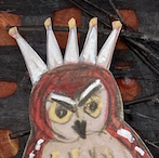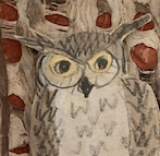 | My Owl began when two owls kept me awake in the woods at night, for a week, in 2021. I had no idea what kind of owls they were because I never saw them. I drew and painted them by day, they hooted by night. It took 4 years to design and engineer these little gems. Owls and the night sky go together. | |||||||||
