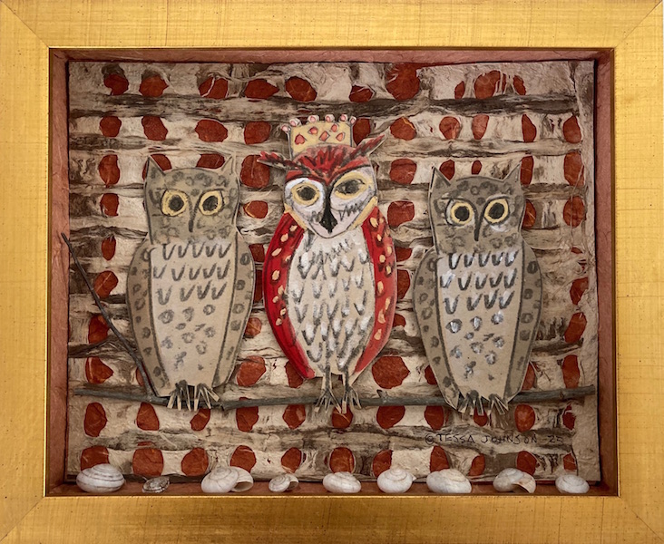 Each piece is created with watercolor drawings, gold and silver leaf paint, handmade papers, 9 x 11 x 2 inches Framed |